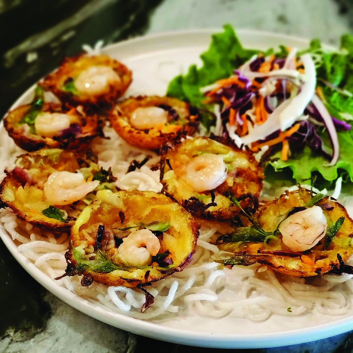 Early hits at the newly opened V’s House include the creamy-crunchy banh khot.