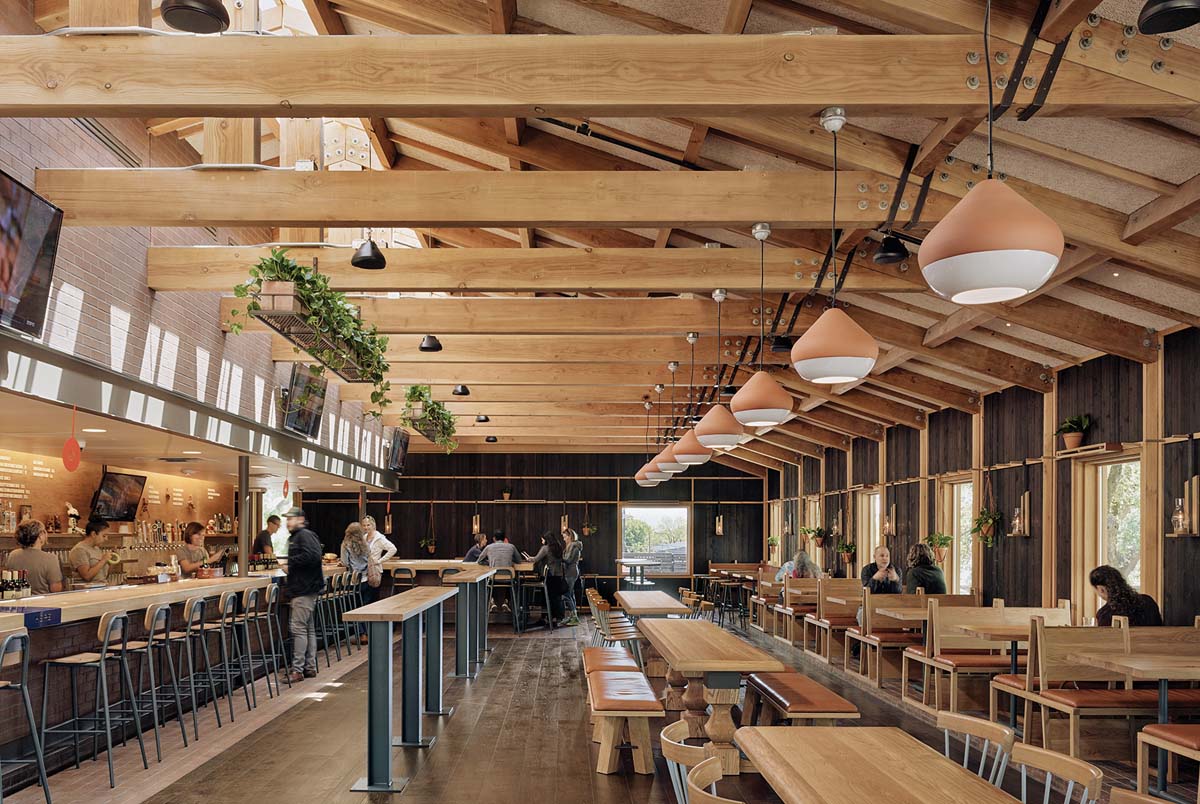 Another Dallas export, STIRR has redone the former Kona space in Crockett Row with the help of Coevál Studio. Look for a slick, modern bar and eatery done up in black-and-white tiles, caramel leather upholstery and smooth wood tabletops (plus a fabulous longhorn skull at the entrance). Chic decor elements and black-clad servers make it feel a bit nightclubby, but an abundance of TVs makes it clear that game-watching is encouraged. Graze on ale fondue — made with beer cheese, Gouda and cream cheese — with pretzel bites for dunking; Funky Town Hot Chicken served with maple piri-piri sauce and a special blue cheese dressing for dipping; or a prime rib French dip. Free valet parking.