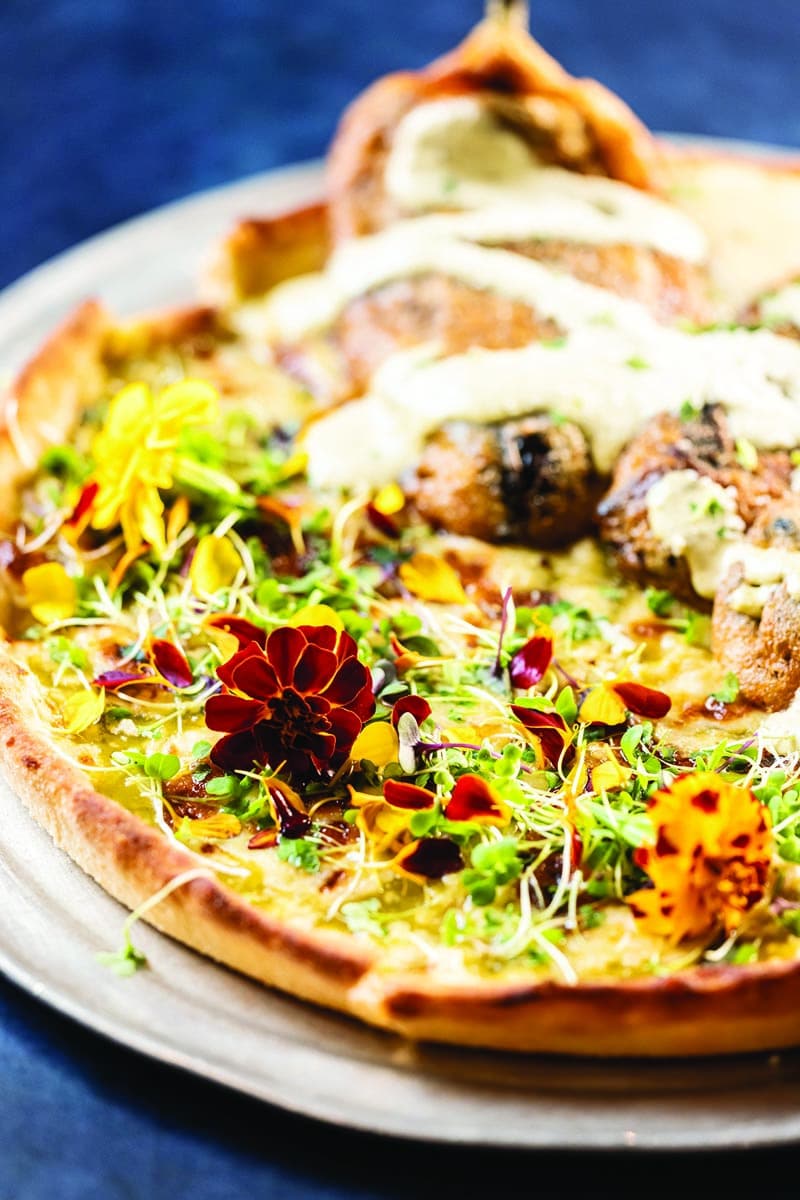 Next time you find yourself craving both tacos and pizza, check out Nico’s MX Pizzeria and Cocktails Venue. Chef Manny Reyes (whose resume includes Grimaldi’s Coal Brick-Oven Pizzeria and Cane Rosso) and co-owner Nico Ponce turn out blistered pies topped with ingredients more commonly tucked into Mexico City tortillas (salsa verde, suadero beef, edible marigolds) than atop pizzas.