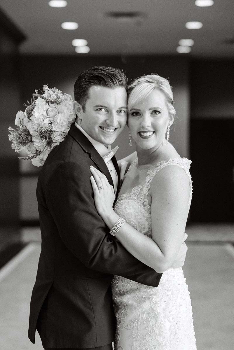 Erin knew that she wanted to work with photographer Kate Panza, who’d shot a friend’s wedding, but she had no interest in micromanaging the rest of the plans (“I didn’t care what color napkins we had”), so she found a venue that could take care of most of the details in-house. Aristide Colleyville, formerly known as Piazza in the Village, hosted both ceremony and reception and provided a wedding coordinator, catering, place settings, lighting and much more. The venue even live-streamed the wedding. “Our grandmothers are both unable to travel, but they were able to watch it,” she says.