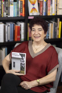 Joyce Connelley with her “Reunion in Stringtown” at Talking Animals Books in Grapevine, where she has a signing July 13.