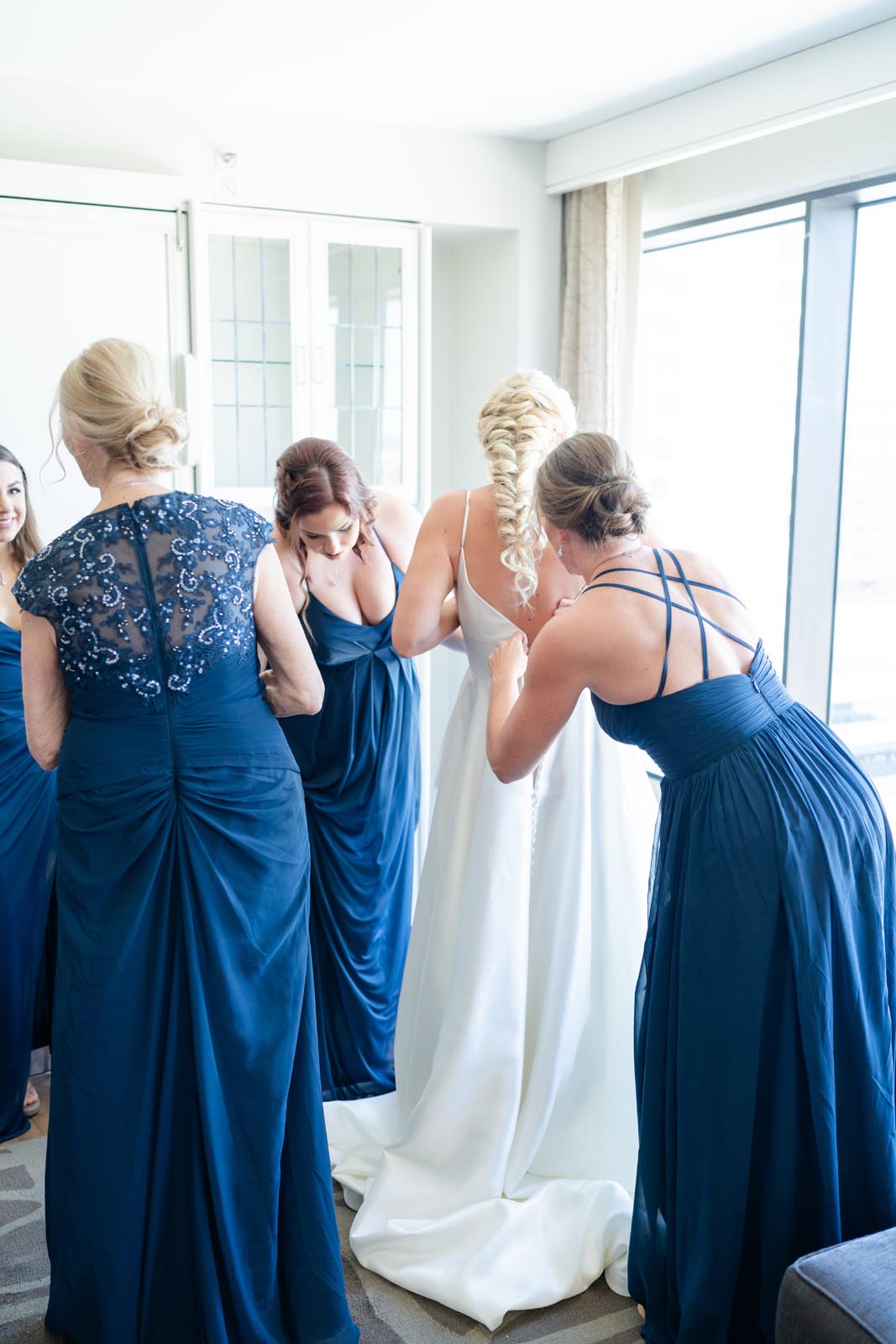 We used Azazie for the bridesmaids. I chose their navy, but let them choose the dress that made them feel most beautiful.