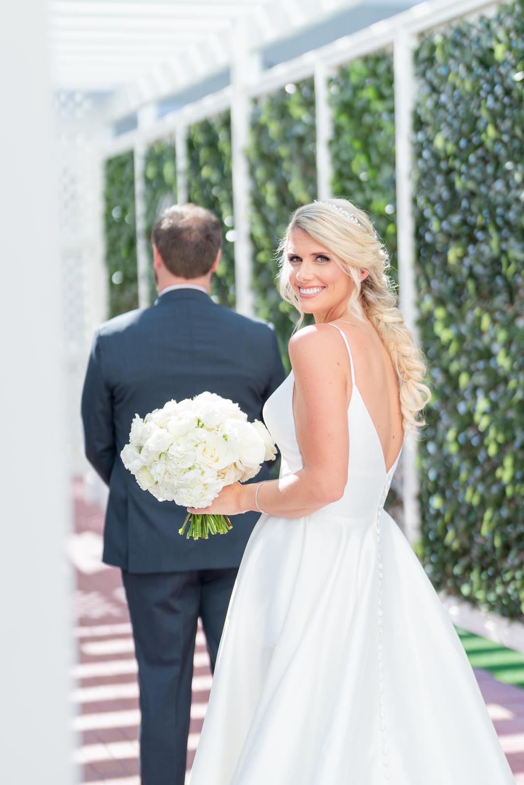 Our first look. It was so special! We went back and forth on whether or not we wanted to have one because we didn’t want to take the specialness out of seeing each other for the first time. I am so happy that we did. If I’m being honest, as I was getting done with my hair and makeup, I could see chairs getting set up below and I was getting nervous. Not about marrying Mike, but just the 111 people who were going to watch me walk down the aisle. When Mike turned around, I didn’t care if 800 people were at our wedding. I was just happy to see my human!