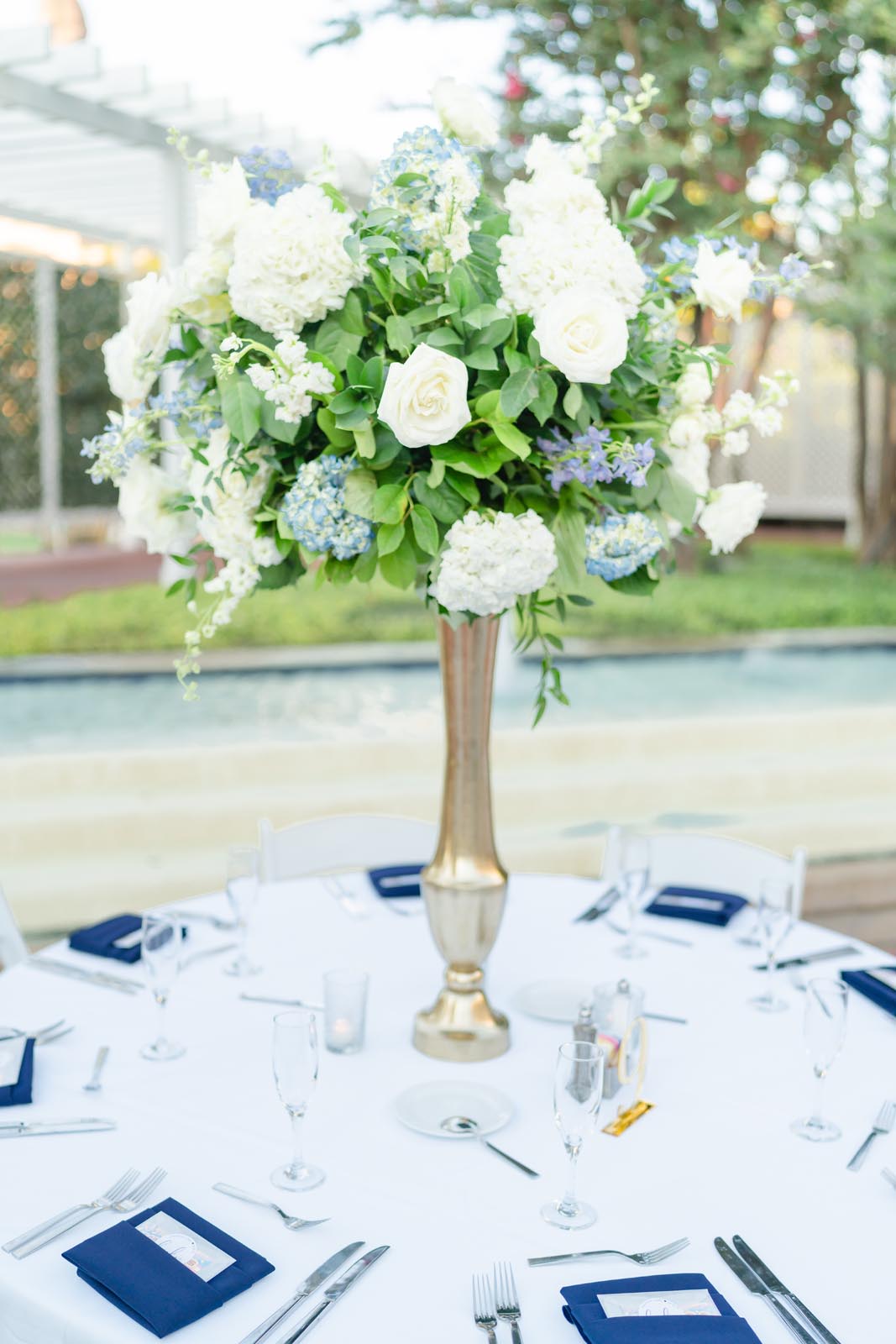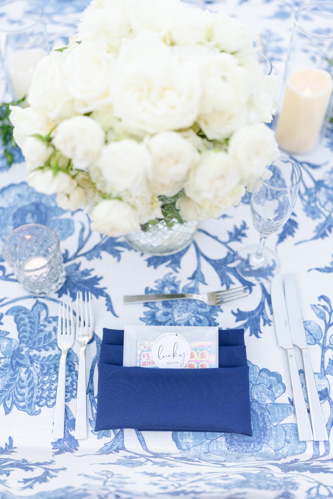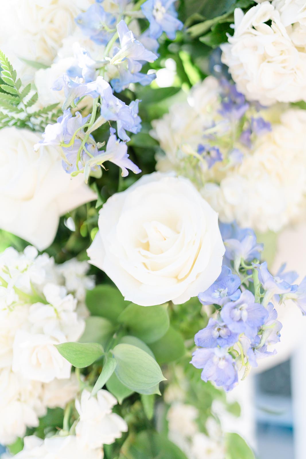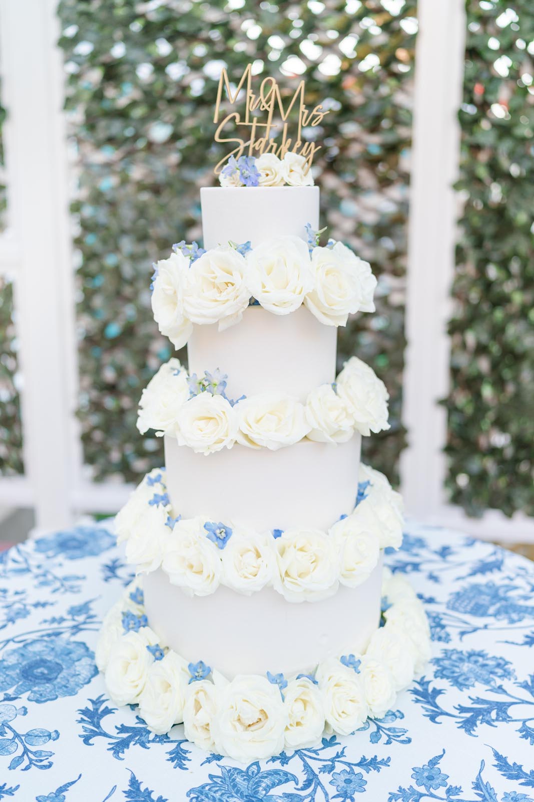 Blushington Blooms. Our colors for florals were blue and white and bits of gold.