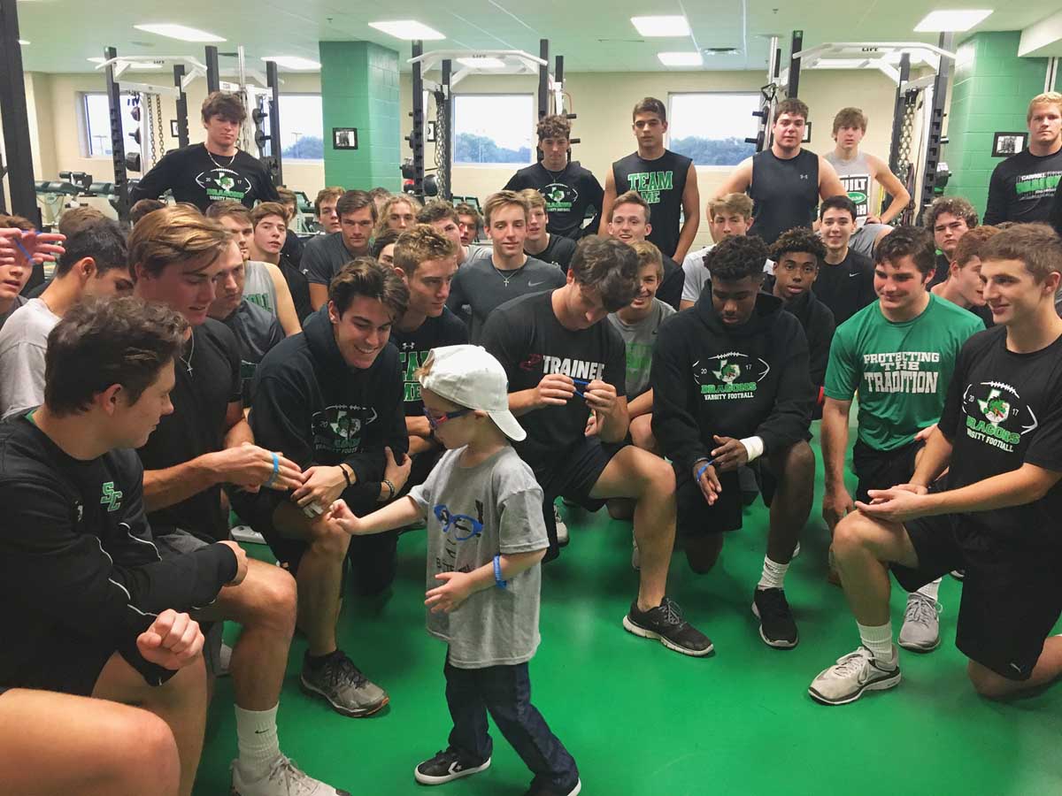 Among those quick to rally around the Hanns was the Dragons high school football team, which the family got to know when their older son, Matthew, played youth Dragons football. The team has worn blue “Batten Hope” bracelets in Joseph’s honor for the last two seasons. Small acts of kindness from neighbors, friends and even strangers have helped to boost spirits on tough days. The Hanns have also connected with other families fighting rare diseases. “A community of people who knows what it’s like is important for both getting through the rare disease and for understanding how to deal with its progression,” she says. “It gives us insight into what might happen next; it helps us to focus on preventative and maintenance therapies.”