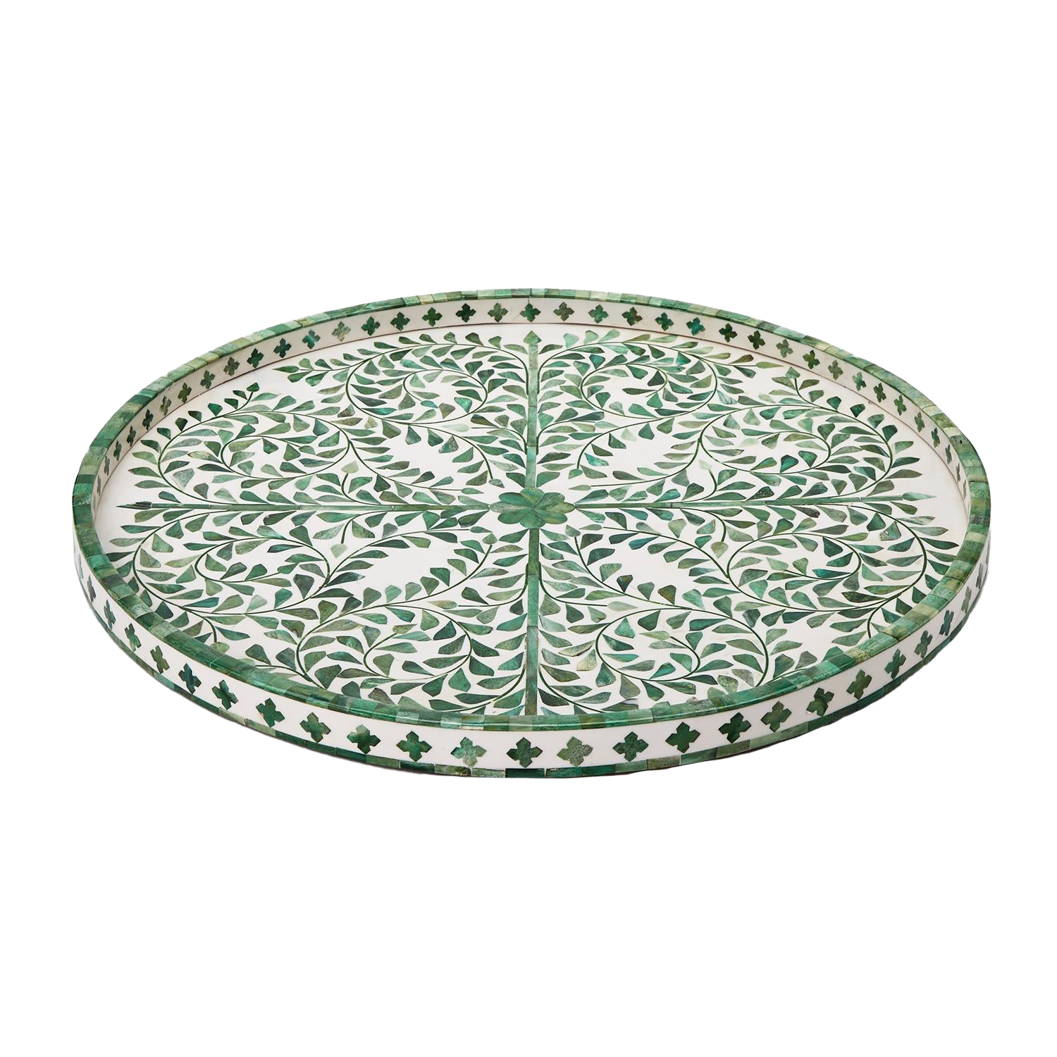 Green and White Inlaid Round Serving Tray