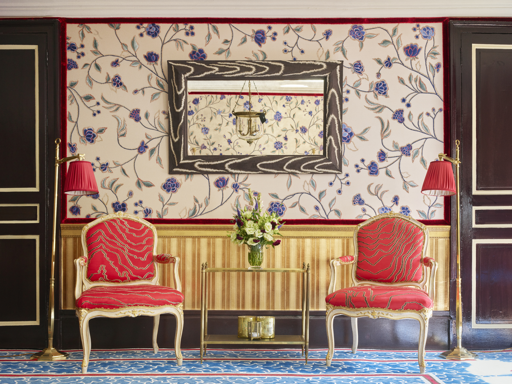 This embroidered wallpaper, a nod to Catherine the Great’s court, is sure to elicit feelings of grandeur.
