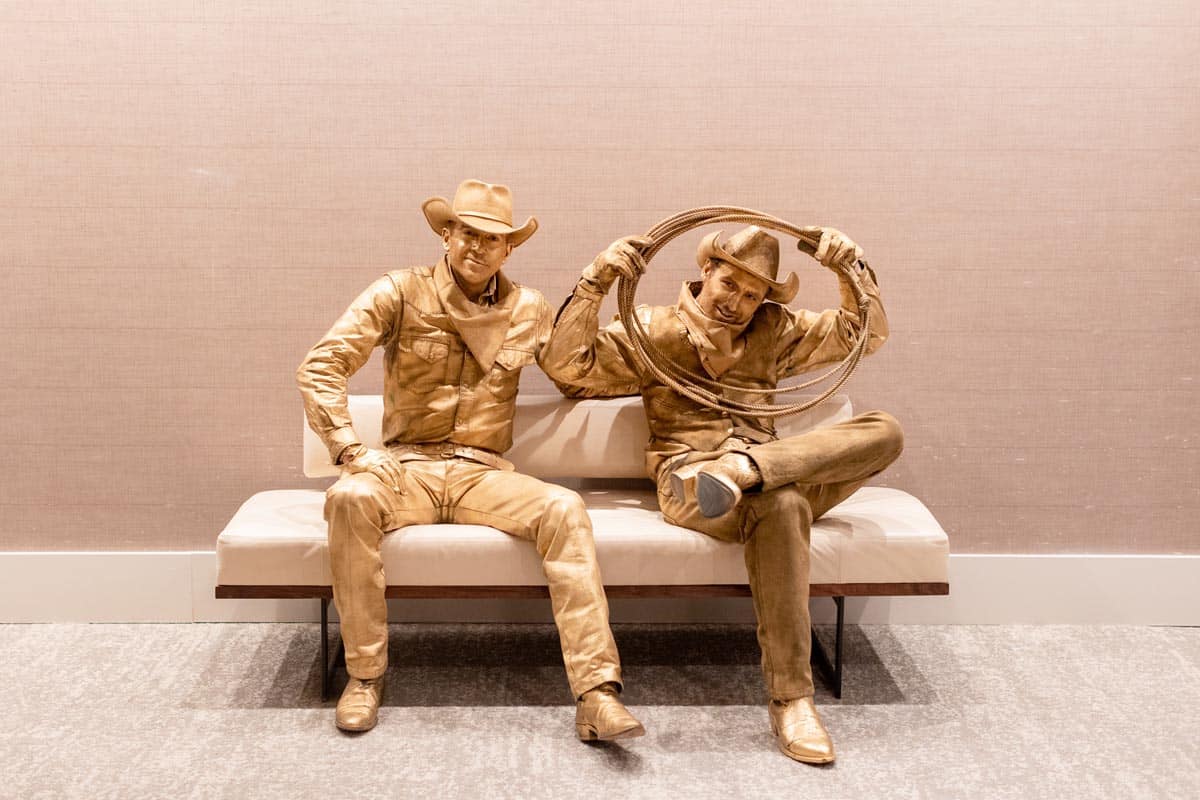 Bring a touch of magic and surprise to your celebration with live performers. These golden cowboys are sure to provide a memorable and quirky touch to your special day!