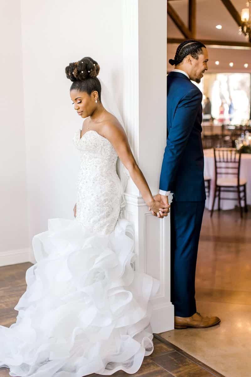 For couples who want to maintain the tradition of not seeing each other before the wedding while also easing pre-wedding nerves, the “first touch” offers the perfect compromise. This intimate moment allows you to talk, hold hands or even share a comforting embrace without laying eyes on each other. It’s a beautiful way to connect, exchange words of love and encouragement and find solace in each other before the ceremony, leaving you both feeling more grounded and ready to begin your journey down the aisle.