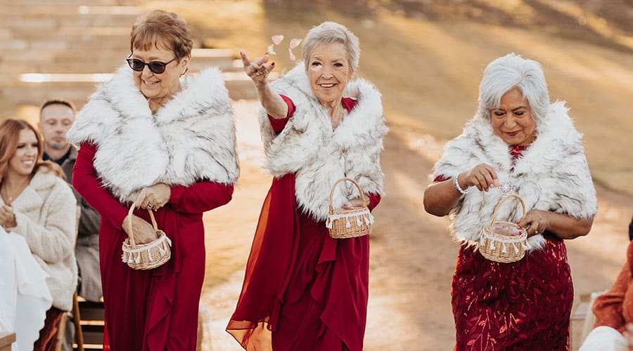 Unconventional flower girls are making waves in the wedding scene, bringing a touch of charm and surprise to the customary role. Grandmas tossing petals, French bulldogs trotting down the aisle and sunglasses-laden groomsmen donning floral crowns have become delightful additions to the procession. It’s a creative and heartwarming trend that reminds us that love knows no age or species.