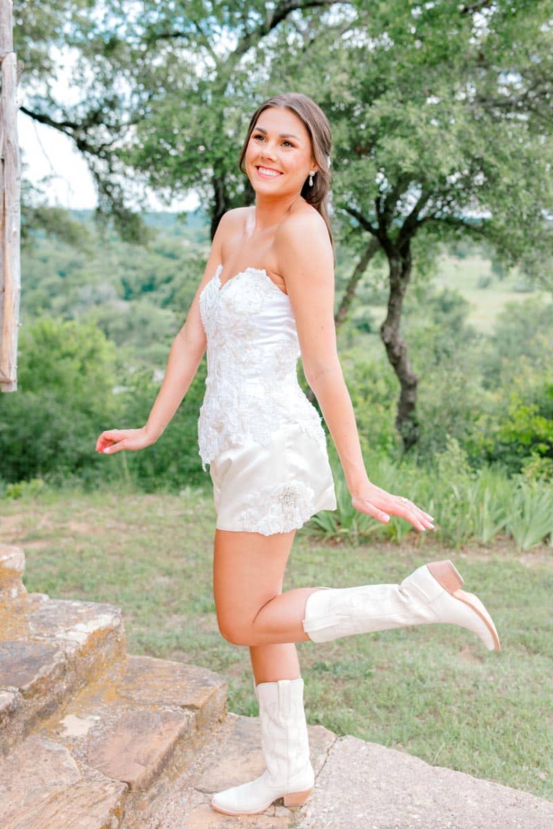 As the western chic look takes center stage, embrace your inner Trail Boss and opt for a sexy white suit paired with a white cowgirl hat as one of your wedding weekend looks. For those looking for a bit of “cowboy culture,” this hat is available at Best Hat Store in Fort Worth.