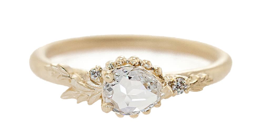 Proper jewelry care and storage is the best way to extend the longevity of any piece, particularly antique rings. Prongs and settings should be checked yearly by a trusted jeweler. Get into the habit of cleaning your rings regularly — simple dish soap, warm water, and a soft toothbrush are perfect — this will prevent grime buildup that can mask chips and abrasions, not to mention make your ring sparkle. Store rings separately to prevent diamonds from damaging other gemstones.