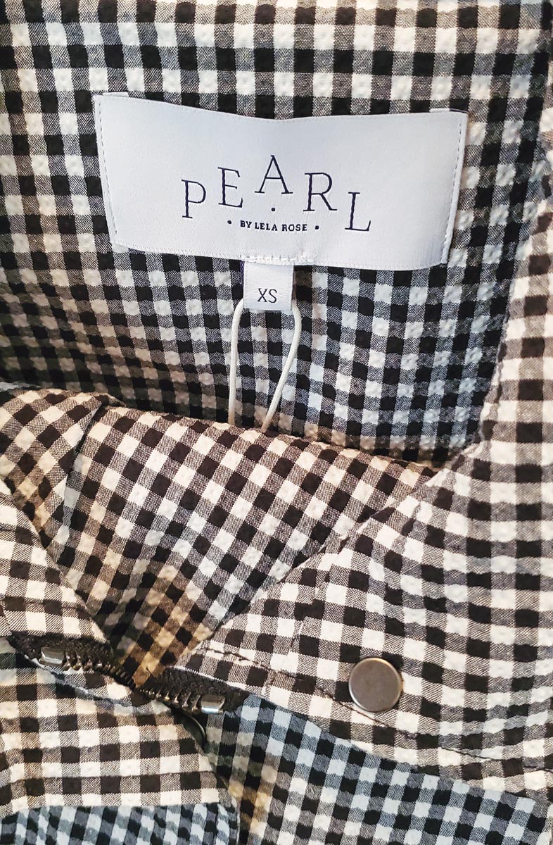 While the pandemic delayed the launch of the spring-summer line, the items available are suited for Texas now and into fall: floral eyelet dresses to wear with summer sandals and cowboy boots later, a black-and-white checked seersucker jumpsuit, striped lace skirts. The price point is less expensive than her signature collection, but there’s no skimping on quality or attention to detail. The designs are more classic and less trendy, pieces that are meant to last. All the clothing is still made in New York City, and the signature touch, a tiny “pearl” sewn into the garment, makes each piece feel special.