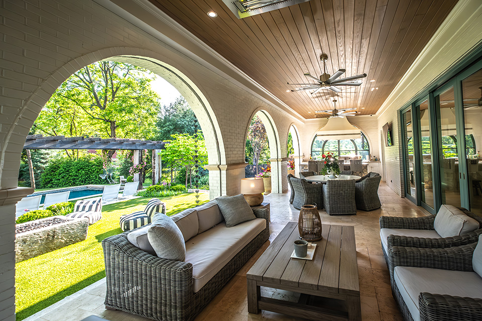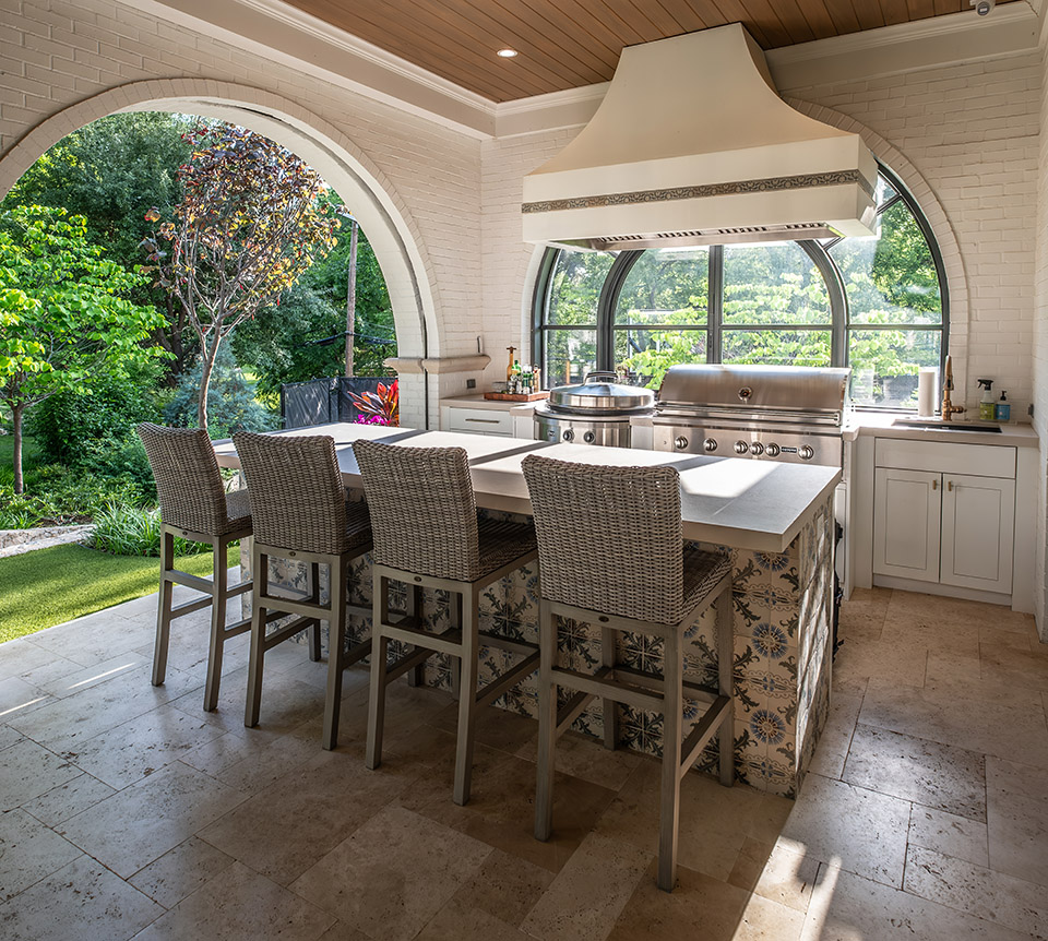 Meshing these design elements with the main house while hiding the elevation differences through landscaping achieved the seamless look the Dykeses wanted.