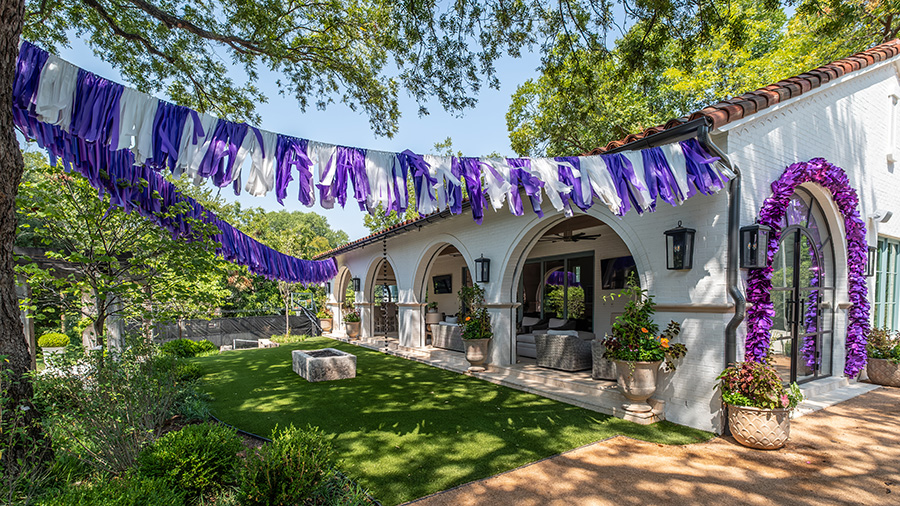 Landscaper Christine Figley added TCU-themed decor for an event at the Dykes’ home last fall.