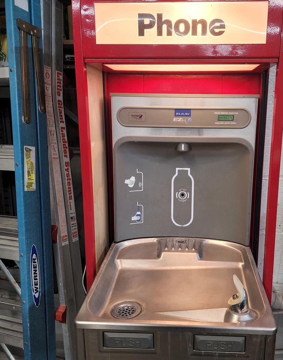 They enjoy fueling a creative spark and practice what they advocate when it comes to reuse: No one at Welman has printed business cards (they make their own), and a phone booth now holds a water dispenser, eliminating the need for single-use plastic bottles.