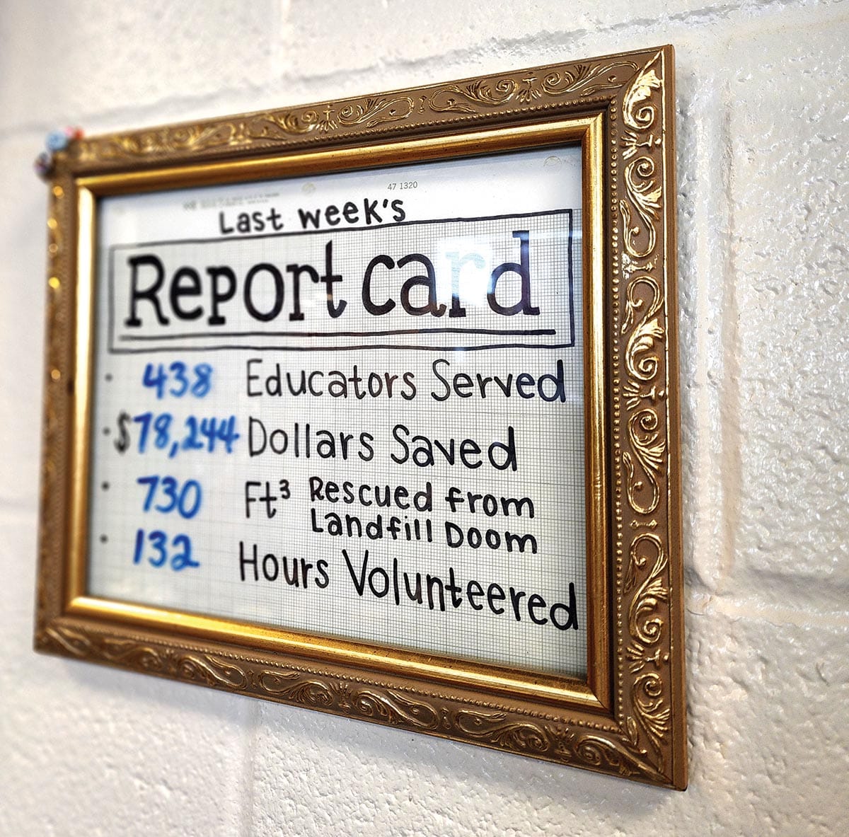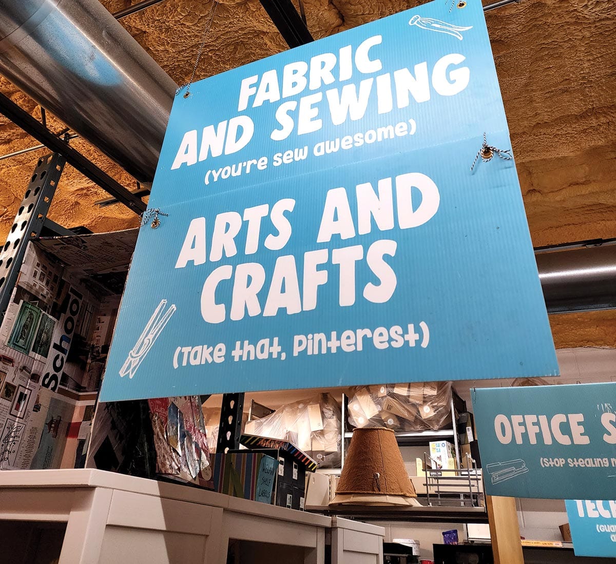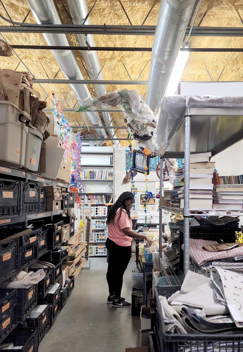 And there are smiling people dropping off donations of everything from notebook paper to rolls of fabric. They’re getting rid of stuff while knowing it’s going to a good cause. Inside, wide-eyed teachers are pushing carts through the Educator Warehouse, a shopping area for educators only, picking up free supplies for their classroom. The key word is “free.” You can almost see their minds spinning over what they could make with that fabric or those ribbons.