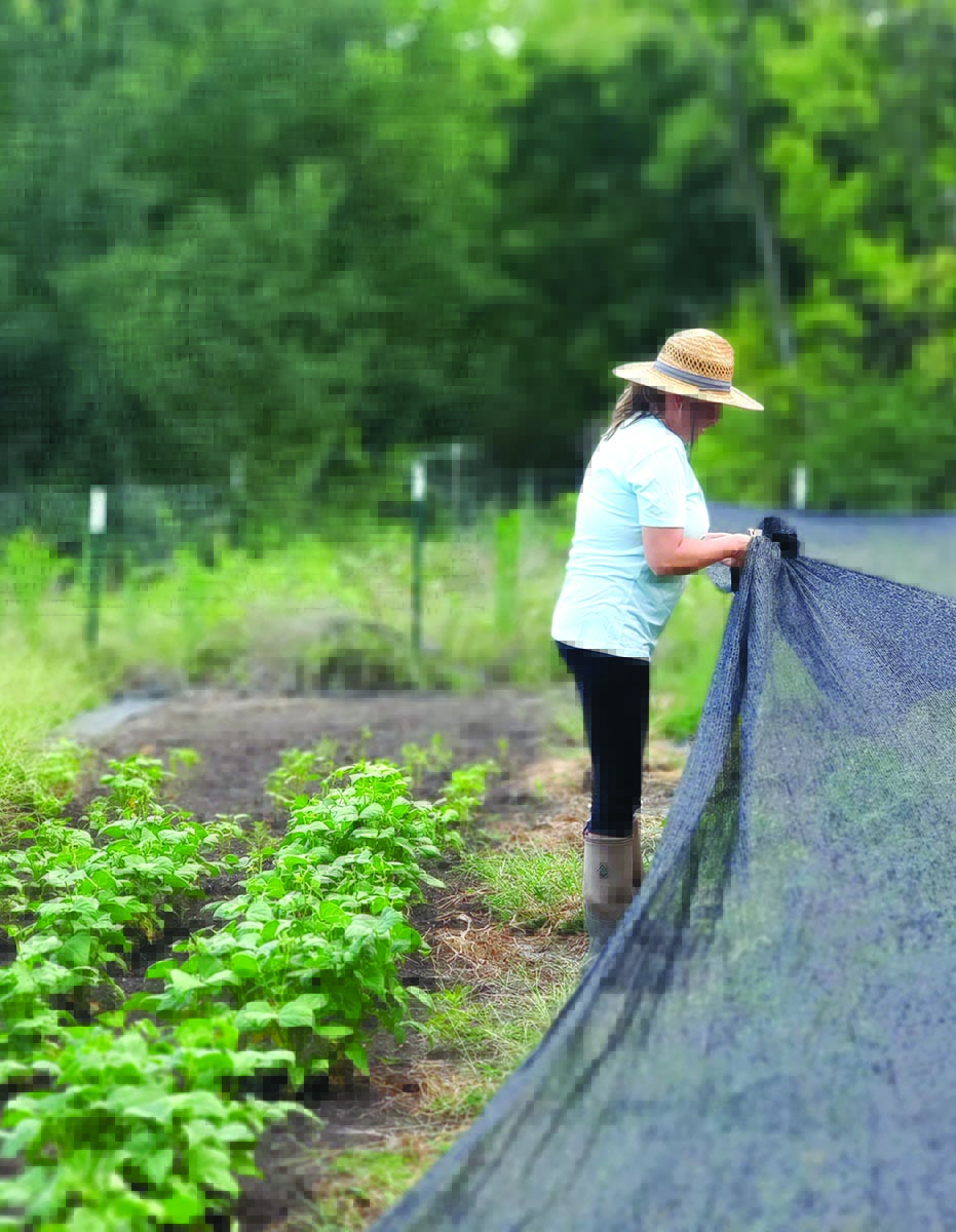 Trish says it wasn’t the freeze but the grasshoppers — along with the early spring rains — that have been her biggest nemesis this year. Since the Stones use no chemicals on the farm, the mesh helps prevent the bugs from munching the crops.