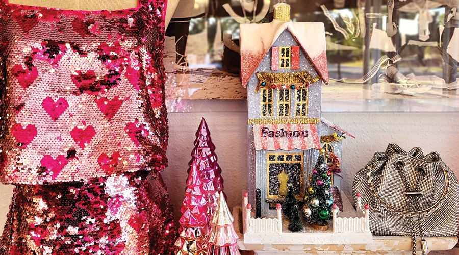 Treasures at this glittery wonderland include whatever fashion accessories or decor (including Christmas villages) owner Rebecca Avant has dreamed up in her magical on-site studio.