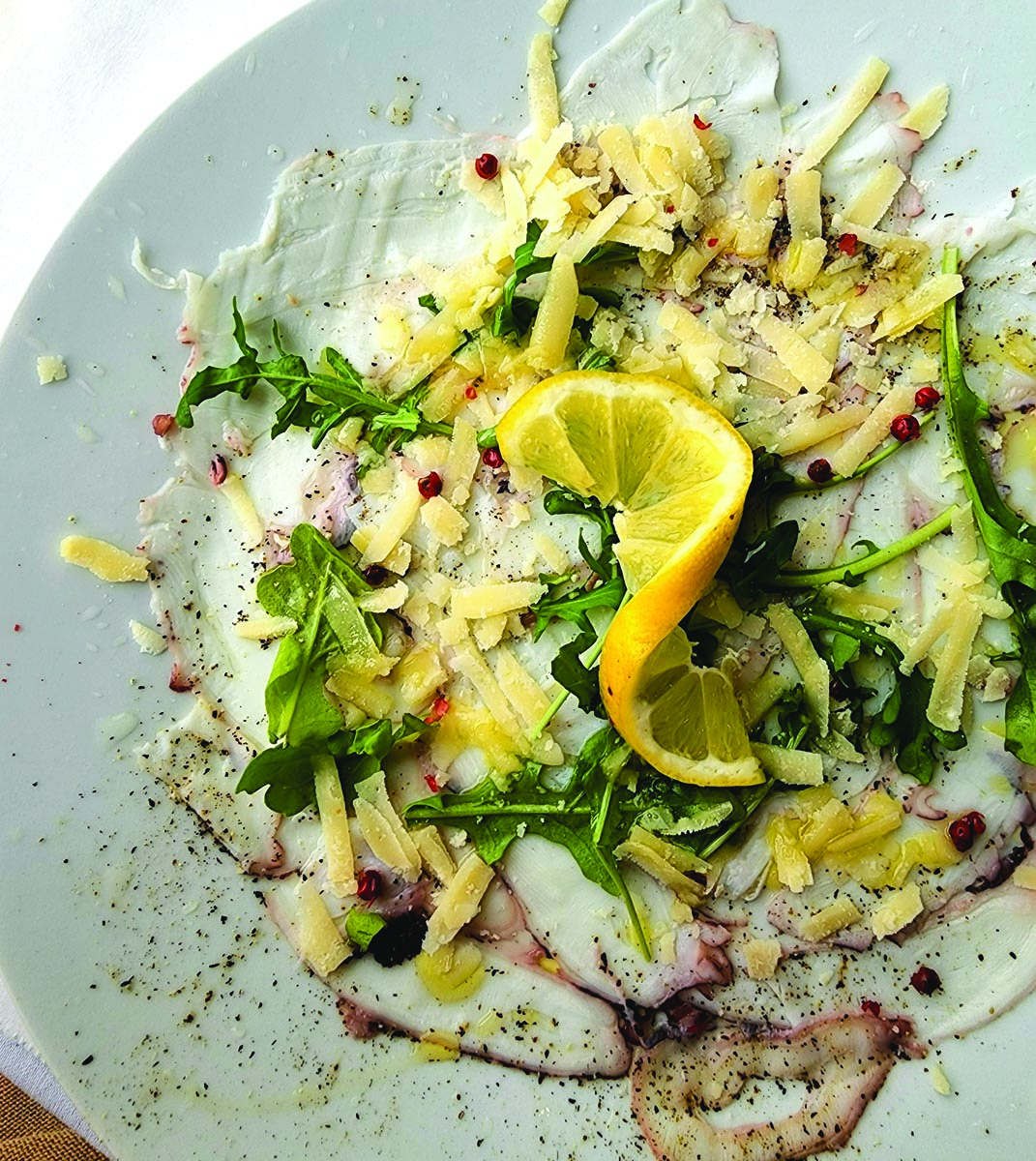 A “coming soon” sign went up in the summer of 2021, prompting lots of chatter on social media by members of local foodie groups. In April 2022, Stella opened its doors to enthusiastic crowds. We went on a Tuesday in May. Reservations are highly recommended for the intimate space (the former home to Five Guys burgers), especially for large parties, and even seats at the bar fill up quickly. Italy native and owner Paola Pedrignani sweeps in a bit after 5 p.m., a commanding figure with her boho glam looks and long, flowing locks. A veteran restaurateur from New York City, she immediately greets newcomers and those who already have become regulars. With minimal staff in place, Pedrignani pitches in with service, too. Tables are close to each other, so the seating feels very European; if you don’t know the couple dining next to you when they sit down, you will before they leave. Don’t go looking for a quiet, intimate experience — expect a party instead. There’s a lot of chatter, singing, the occasional banging of pots and pans, and music. But it all seems to work, and the people-watching is excellent. Our waiter was attentive even as he juggled several tables, and he smiled at our lengthy order. We started with the octopus carpaccio, delicate slices simply dressed in EVOO and topped with arugula, pink peppercorns and shaved Parmigiano, and ended with a bowl of gelato that could have fed three people. For the main course, our veal Milanese was a bit on the dry side, but the platters of housemade pasta were worth every carb and calorie. Servings are generous; we recommend spaghetti with shrimp in a creamy lemon sauce and the penne vodka with bits of Italian bacon. Pizzas range from a classic Margherita to those on a “gourmet” menu, which includes pies with shaved truffles. The wine list is almost all Italian with several options by the glass.