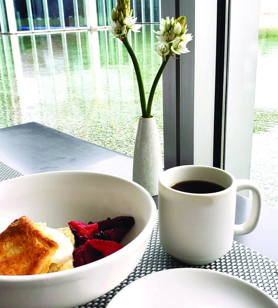 While we’re waiting for the restaurant, now part of Wolfgang Puck Catering, to get fully staffed and bring back Friday-night dinners, we’re more than happy to sit by the glass wall and gaze out at the Modern Art Museum of Fort Worth’s reflecting pond for lunch and brunch. (Light bites and cocktails are available on the terrace, with cocktails and music from 5 to 7:30 p.m.) It might be humid and hot outside, but inside the museum, it’s cool and comfortable. New chef Jett Mora is showing us his love for bold flavors and globally influenced dishes with his take on a beef bowl featuring marinated flank steak, chili garlic rice, kimchi pickled vegetables with Korean dipping sauce and a fried egg, pictured above. We loved the fava bean fritters, too, with their crunchy shell, below. Another nice shareable plate is the buttered mini po’boy sandwich made with crawfish salad.