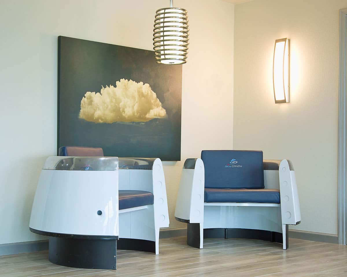 Sky Candy Aero Designs This boutique design company specializes in repurposing aircraft parts into one-of-a-kind furniture and accessories. Everything can be customized, and owner/designer Penney Pollard welcomes inquiries from interior designers. Note: Bespoke manufacturing takes a minimum of eight weeks. Call or visit the website to set up an appointment to discuss possibilities, 817-491-1100, skycandydesigns.com.