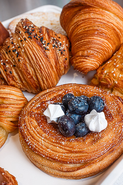 The perfectly layered, golden-brown croissants fill up half the counter with flavors like butter, almond, chocolate and hazelnut. Croissants never stay on the counter for more than one day, even though they remain fresh longer. Naranian explains that she donates any unsold croissants to local organizations like the fire and police departments.