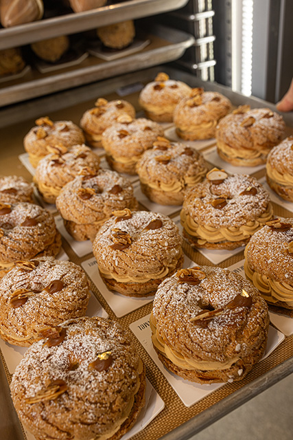 In the kitchen, Narinian’s team is busy preparing for the days ahead. Croissants require three days to make, including a multi-day fermentation process and time in a retarder proofer, which functions as a freezer, cooler and proofer all in one device.