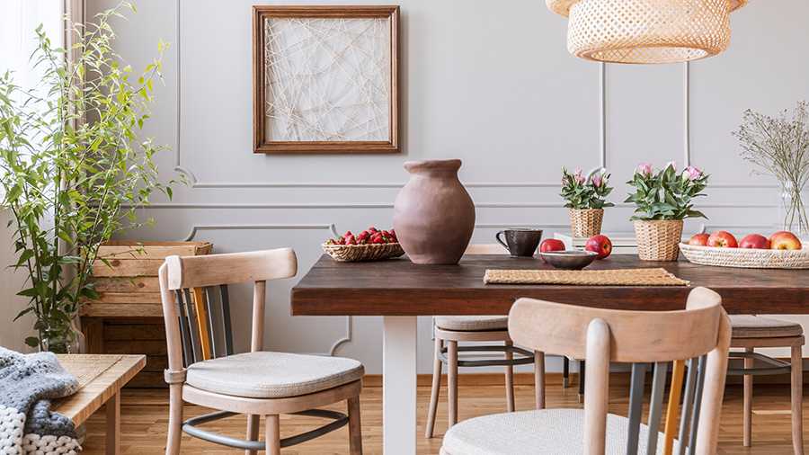 The key to achieving a warm, inviting room, regardless of style, is layering and texture. Trends this year included fluted glass, wood detailing like beadboard and wainscoting, velvet upholstery, and layered area rugs. Natural fibers like rattan, wicker, or bouclé fabrics in furniture pieces and decor add dimension and warmth, seamlessly blending a variety of styles.