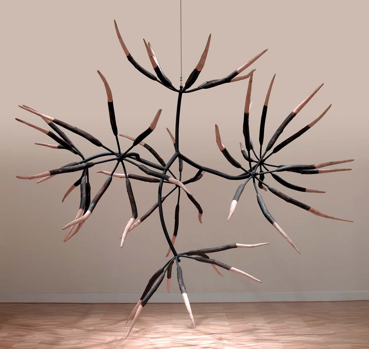 James Surls’ Seven and Seven Flower A pine and steel sculpture, through July 31, 2020.