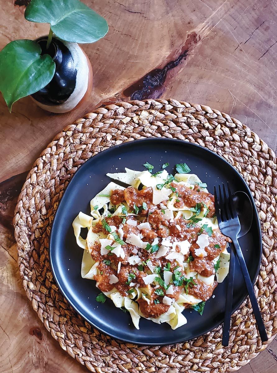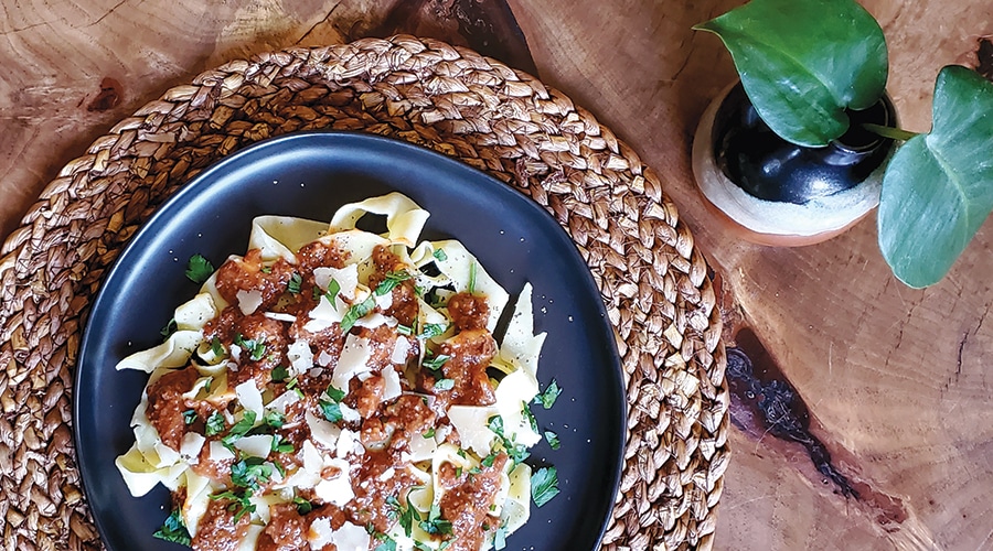 It’s the signature dish of Bologna, the capital of the Emilia-Romagna region and the epicurean epicenter of Northern Italy. Chef Scott Lewis at Piattello Italian Kitchen in Fort Worth turns out a simple and hearty meat sauce — a perfect match for the handmade tagliatelle. You can substitute another hearty pasta, such as ziti or rigatoni, or enjoy it on gnocchi or ladled over a Parmesan-enriched polenta. Although uncomplicated, this dish requires almost two hours to reduce, and allotting even more time for it to simmer is richly rewarded. As with most time-honored sauces, it’s far better if you let it cook low and slow (traditionally for up to six hours), stirring occasionally, allowing the flavors to meld. For a good wine pairing, Lewis suggests Tenuta di Nozzole Chianti Classico Riserva or Tenuta Santa Maria Valpolicella Classico Superiore from Verona.