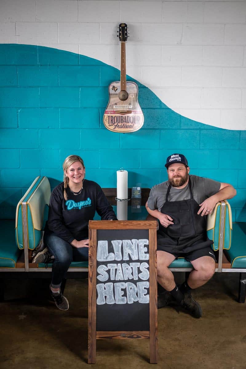 Fans of Dayne’s quickly caught on to the couple’s move and have lined up daily outside the food truck at the shopping center. Customers today can sit at tables inside a temporary dining room. The Weavers ordered more high chairs to make the space more family-friendly.