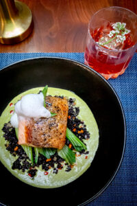 In any case, it’s not likely the cocktail is a great pairing with salmon. Better to order one before dinner, and pair the fish with a light white wine such as a chardonnay, chablis or white burgundy, he said.